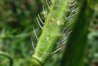 Le Coquelicot argémone (Papaver argemone) est une messicole rare en Lorraine dont les capsules oblongues sont hérissées de quelques longs poils raides.