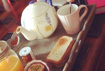 Option Jus d'oranges pressées, fruits de la passion, pain complet grillé et confiture de citron. Thé vert à la menthe pour accompagner.#1 - Mueslis, granolas ou birchers, un plat complet et savoureux dès le matin !