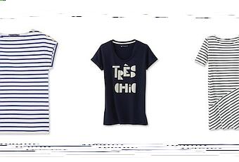Marinière 22€ au lieu de 45€ / Tee-Shirt "Très Chic" 22€ au lieu de 45€ / Robe Marinière 57€ au lieu de 115€