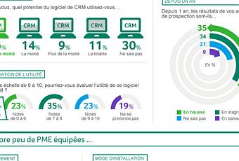 Les PME déclarent que les logiciels CRM permettent un meilleur partage des données (81%) et la possibilité de mieux connaître les clients (73%). Ces éléments sont intéressants si on les compare au fait que les entreprises interrogées n’utilisent qu’à moitié le potentiel de leur logiciel CRM (pour 36% des entreprises). Les PME sont conscientes de l’intérêt du CRM mais n’exploitent pas entièrement ses potentialités. 74% d’entre elles ne dispose même pas d’un tel logiciel.