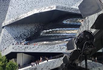 Le label américain Hood by Air a fait défiler sa collection masculine à Paris. Hood by Air, le label qui monte originaire de New York fait défiler sa collection masculine à Paris et choisit comme fond de décor le bâtiment ondulant de la Philharmonie. Le créateur Shayne Oliver aime mélanger les genres, passer du Rnb au goth, du sportif au drag queen, du baraqué au jeune garçon tout frêle… A l’image des jeunes d’aujourd’hui déjà fans du label. Pour l’été 2016, les hommes HBA osent tout, même les barrettes dans les cheveux et strass diamantés sur les cils, même les protège-dents en aiguilles ou perles. Oliver découpe, détache, rattache. Le pantalon se divise en trois morceaux et se dé-zippe, le top se drape, le cuir violet prend de l’ampleur, le jean se craquèle, l’accessoire à la main se porte comme un gant de boxe. Le logo « HBA » déjà très reconnu et repris se retrouve un peu partout dans la collection. Conscient du mix des cultures, de l’importance du streewear, Oliver mélange et joue avec tout, n’a pas peur de surprendre, expérimente, tout en créant un phénomène de gang « HBA »…