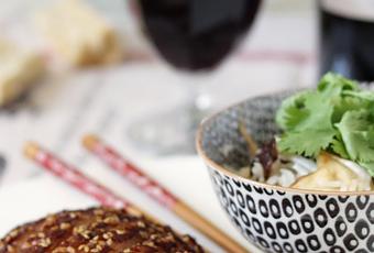 Canard teriyaki au sésame, riz au shiitake, soja et coriandre
