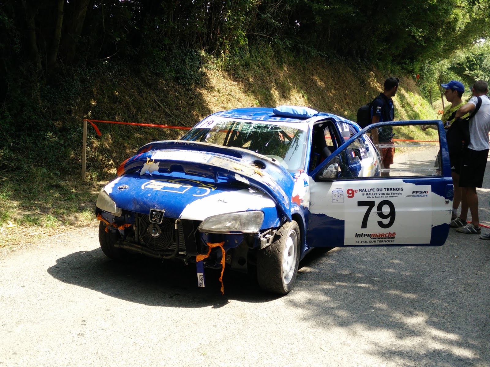 Et après une heure de passages, toutes les 20 secondes en moyenne, arriva le drame: un petit duo de jeunes dont c'était le premier rallye. Après un freinage hasardeux, c'est à ma hauteur que s'est envolée leur 106 pour effectuer un tonneau et atterrir sur le toit. Heureusement, plus de peur que de mal. Espérons qu'ils en veuillent encore et qu'on les retrouvera bientôt sur une autre course !