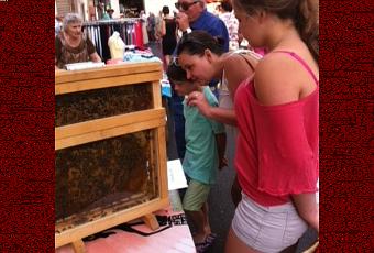 Tous captivés par l'explication de l'apicultrice qui présente un rayon de ruche sous verre avec les alvéoles et les ouvrières qui s'affairent pour dire à la Reine : tu ponds là, et puis là et encore là ....