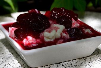 Lors de mes vacances en Grèce j'avais mangé des tonnes de fromage blanc au miel ou accompagné de d'une sorte de confiture de raisins ou de cerises (en fait ce sont des fruits confits au sirop).
