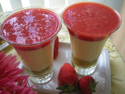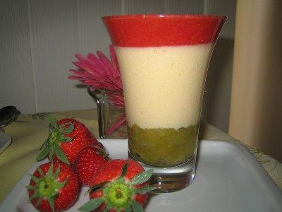 1 et 1/2 feuille de gélatine-12 cl de crème-2 càs de jus de macération de la rhubarbe-4 oeufs jaunes et blancs séparés-60+20 gr de sucre-10 gr de maïzenaCOULIS