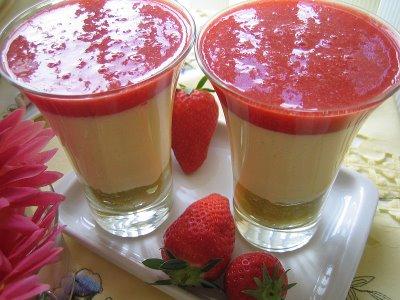 1)Laver et éplucher la rhubarbe, la tailler en bâtonnets d'1/2 cm2)Mettre dans un saladier avec le sucre et laisser mécérer 1 heure.3)Egoutter en gardant 2 càs de jus de macération.4)Dans une casserole, porter à ébullition et cuire 1 minute.5)Verser la rhubarbe dans des verrines et laisser refroidir.CHIBOUST1)Mélanger les jaunes d'oeufs avec le sucre semoule, puis la maïzena en fouettant vivement.2)Dans une casserole, faire chauffer la crème + 2càs de jus de rhubarbe.3)Lorsque la crème bout, verser sur le premier mélange et remettre cuire à feu moyen en mélangeant jusqu'à épaississement au fouet.4)Incorporer la gélatine essorée5)Battre les blancs d'oeufs en neige ferme et incorporer au mélange.6)Mettre sur la couche de rhubarbe et remettre au froid.COULIS:1)Mettre les fraises, le sucre et le jus de citron dans un mixer et les réduire en purée.2)Mettre sur la crème Chiboust bien froide