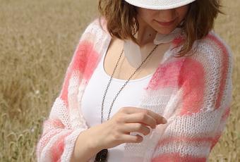 Après plusieurs heures de travail voici le Kimono Amour ! Pour le réaliser, j’ai sélectionné deux pelotes que j’ai achetées chez Lil Weasel lors de mon passage à Paris. Il s’agit de deux pelotes de Debbie Bliss, une de couleur rose clair et l’autre de couleur corail. Pour la couleur principale, j’ai choisis d’utiliser ma grosse pelote de mohair blanc. Ce kimono est un modèle d’Alice Hammer dans le In The Wool For Love #1 réalisé par les petites robes noires !