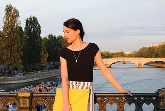 T-shirt: H&M Pantalon rayé: Friperie Pochette : Cousue main Escarpins: H&M Rouge à lèvres: TOO FACED ★ photos: Marion ★