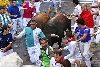 Rapide encore cet encierro : 2mn 24 pour les toros de Fuente Ymbro. Et sans gros degats : une seule personne transféré à l'hôpital avec luxation de l'épaule.