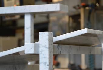 De la fonction à l'esthétisme, du design à l'art ? R&BM est réalisée entièrement en marbre de Carrare. " Choix de ce matériau réside dans sa préciosité, sa fragilité ainsi que dans sa référence à la statuaire antique. "