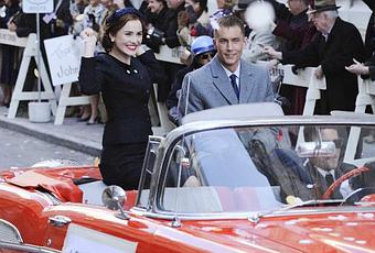La série n’est pas entièrement mauvaise; dans la mise en scène, on s’est clairement inspiré des posters de pinups et des couleurs chatoyantes, voire criardes relatives à la première décennie du technicolor autant dans les vêtements de ces dames que dans la nourriture dont l’arrivée du Jell-O semble avoir fait grande impression. Bonne idée aussi l’inclusion d’images d’archives ou carrément des scènes de la série tournées avec un filtre que l’on associe aux années 60, ce qui aide à nous plonger dans ce contexte de guerre froide et surtout qui mettent en évidence une forme puissante de propagande, visant à ce que l’ordre établi ne bouge pas d’un iota tout en prétendant que l’on vit dans le meilleur des mondes.