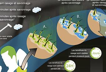 L'hypothèse qui expliquerait ces résultats est la suivante : comme pour le visage, le passage des lames du rasoir a une action exfoliante sur la peau et permettrait en plus sous les aisselles d'enlever le sébum et les débris odorants qui restent collés à la peau et aux poils, et qu'un simple savonnage ne permettrait pas de retirer. Une aubaine donc pour recommander l'utilisation du Gillette Body dont la tête de rasage s'adapte à la forme concave et au relief inégal des aisselles.