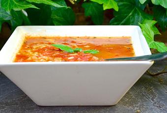 Une petite soupe légère pour les diners d'été bien parfumée au basilic.