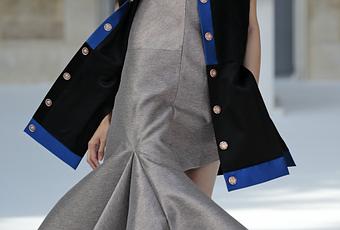 Altesse du podium, une statue blanche trône, est c’est d’elle que surgissent les mannequins. L’architecture des vêtements évoquent directement la rigidité de la matière dans laquelle a été sculpté cette fameuse statue. Hommage aux performances qu’ont livré les plus grands sculpteurs au travers des siècles, cette collection donne l’occasion de réfléchir sur les prouesses de cet art. Parvenir à transformer la pesanteur des matières en des voiles légers qui enveloppent les corps de muses et déesses. Égaler les plis laissées par les ondulations du vent sur les vêtements, et rendre les mouvements du corps.- Faire oublier le poids des matériaux- donner l’illusion.