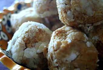 Ghriba, cette bouchée fondante connue de la pâtisserie marocaine, des petits gâteaux qu'on peut décliner à plusieurs façons (aux amandes, noix, noix de coco, aux épices, ou à la confiture recette ici)