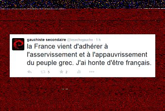 Aujourd'hui, notre pays a validé l'accord de Bruxelles sur la Grèce à une écrasante majorité. L'Assemblée nationale l'a approuvé par 412 contre 69 voix et le Sénat par 260 voix contre 23. Le détail des votes des députés est visible ici. Laissez moi vous dire pourquoi ce soir, je suis ulcéré au point de m'être lâché sur twitter en disant haut et fort que j'avais honte d'être français.