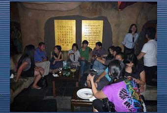 On commence par un petit afterwork au Mural (697, YongJia road- 永嘉路697号, proche de HengShan road - 衡山路). Pas facile de le trouver, seul un petit panneau indique la présence de ce bar en sous sol, juste à côté d'une banque. Après avoir descendu quelques marches, on arrive dans un bar à la décoration unique. Les murs sont recouverts d'une imitation de roche, donnant l'impression d'être dans une grotte. Les décorations, des gravures bouddhistes, des statues anciennes, et des peintures rupestres, nous plongent directement dans une ambiance à la fois mystique et mystérieuse. Dommage que la roche ne recouvre pas toute la surface, le plafond et ses tuyaux faisant un peu tache dans l'ensemble. Mercredi soir, c'est Ladies' Night, avec cocktails gratuit pour les filles. Les prix sont un poil cher, mais l'ambiance étonnante vaut bien le détour.