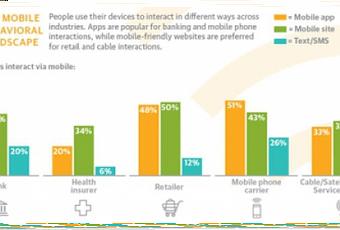 Plus précisément, le panel d’interrogés utiliserait à 63 % une application dédiée pour communiquer avec leur banque, 42 % directement le site mobile de celle-ci et 20 % via SMS. À titre comparatif, les interactions avec un opérateur mobile, seconde industrie avec laquelle communique le plus les clients via mobile, s’élèvent quant à eux à 51 % via application, 43 % via site mobile et 26% via SMS.