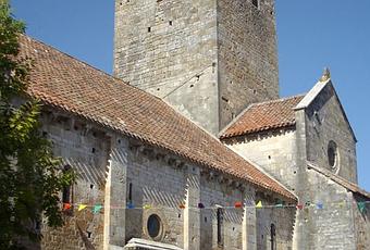 Son clocher fortifié domine la vallée de la Lémance : on ne peut pas le rater.