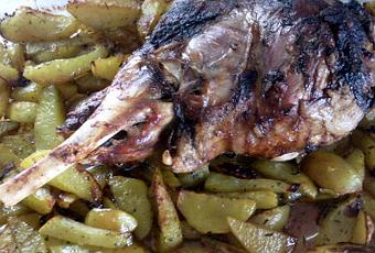 Servir le gigot de pomme de terre fritte au four aromatisé au herbes.