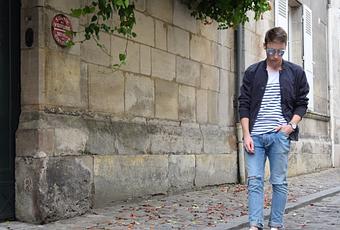 Je vous avez parlé il y quelques semaines du lancement de la collection homme chez Promod en vous proposant un look avec cette veste bleue marine col aviateur. Aujourd’hui je vous retrouve avec une nouvelle pièce de leur collection, l’indémodable marinière !