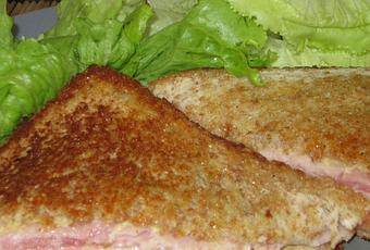 Faire fondre le reste de beurre et de miel et cuire la deuxième face du croque à feu moyen, jusqu'à ce que la mozza soit fondue.