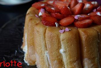 Au moment de servir, retourner la charlotte sur une assiette pour démouler et décorer avec les fraises mises de coté.