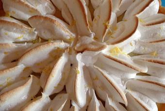 Le tout est surmonté d'une meringue italienne dressée à la douille St-honorée et légèrement grillée au four.
