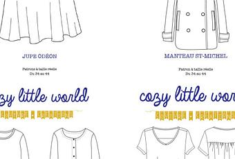 Au gré de mes ballades virtuelles, j’ai fait la découverte de l’univers de Fanny du blog/eshop cozy little world (dont vous découvrez les 4 premiers patrons) et je dois avouer que j’ai été complètement bluffée, mieux… conquise ! Ce sont de très bonnes bases bien réalisées et documentées sur le blog pour décliner nos propres réalisations dans des tissus divers et variés, à des prix très raisonnables (entre 3 € et 7.5 € le patron allant de la taille 34 au 44…).