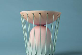 Depuis quelques années maintenant la céramique fait peau neuve et attire les jeunes designers, ici, par les interactions, les mouvements, les formes et couleurs le matériaux prend un sérieux coup de jeune. Non seulement pour l'esthétique mais le tissage de fil élastique permet de guider, assister, calibrer le mouvement et préserver la pièce fragile de base.