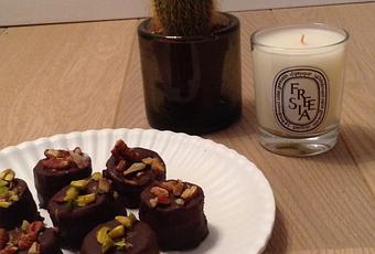 3 / Quand vos bananes sont prêtes, plongez les une par une dans le chocolat fondu. Il faut les faire rouler afin qu'elles soient bien enduites de chocolat.
