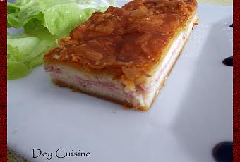- Sur un rectangle étaler 1/3 de la béchamel en laissant 1 cm sur les bords. Déposer dessus 3 tranches de jambon, puis 1/3 de la béchamel, les 3 autres tranches de jambon et finir avec le reste de béchamel.
