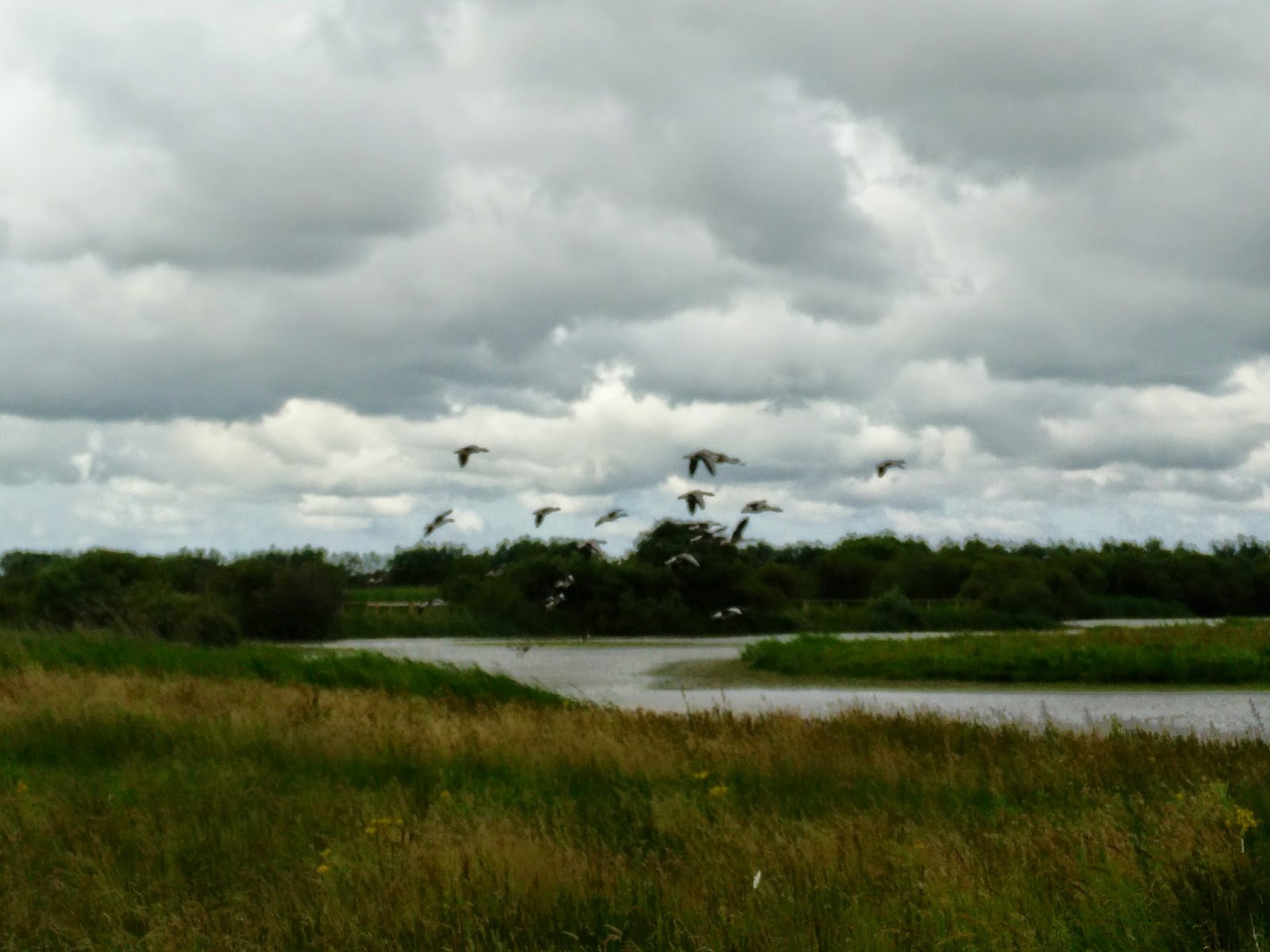 Dès le début, on observe avec facilité des cigognes (18 nids sont présents dans le parc) et des oies sauvages (qui me font caca dessus)...