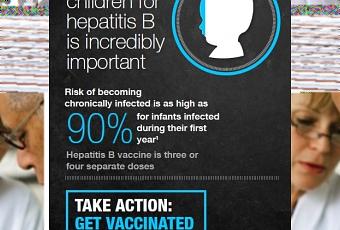 L’hépatite B, celle qui a son vaccin : B illustre parfaitement l’axe de cette Journée, » chacun peut se protéger « , car B a son vaccin. Or la probabilité que l’infection devienne chronique dépend de l’âge de l’infection. Les jeunes enfants infectés par le virus de l’hépatite B sont donc les plus susceptibles de développer des infections chroniques : 80 à 90% des nourrissons infectés durant leur première année de vie de développeront des infections chroniques (Voir visuel ci-contre).