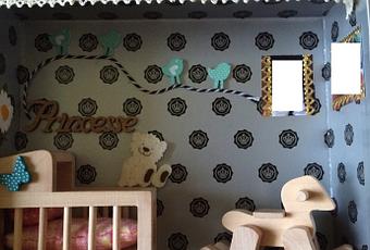 Au mois de février, j'ai appris que mon amie était enceinte et attendez une petite fille. Cette dernière à pointé le bout de son nez il y a 3 jours. Pour l'occasion, je lui avait fait une " pseudo " baby shower, je lui avait fait une boîte avec quelques cadeaux pour fêter cette événement dont cette petite vitrine " chambre de bébé ".