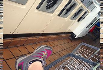Après une grasse mat’ (réveil à 7h du mat’, puisque ça faisait 8h à l’heure de Denver !), on va pendre notre petit-dej au Starbucks (ça fait partie de la chambre, 9$ par personne par jour au Starbucks !), puis faire une lessive dans un mall mexicain… :-) on est arrivées assez tôt, et c’était intéressant de voir tous les gens qui viennent faire leur lessive !