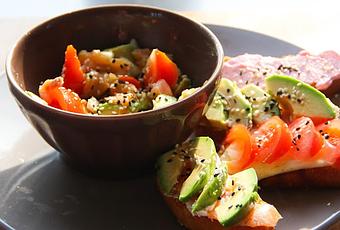Découpez vos avocats et vos tomates en tranche assez fines et vos oignons en petits morceaux. Découper votre saumon à la taille des tranches de pain.