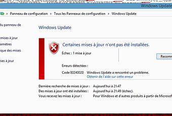 La mise à niveau automatique de Windows 10 pour ceux et celles qui l'avaient réservée est proposée depuis le gestionnaire de mises à jour de Windows. Le processus de mise à jour doit télécharger les fichiers d'installation du nouveau système avant de procéder à celle-ci. Or, pour certains utilisateurs sous Windows 8.1, la mise à jour s'interrompt en affichant une erreur portant le numéro 80240020 :