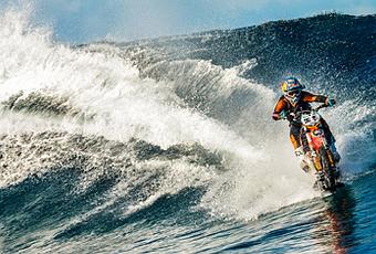 Sous la supervision de ses mécènes DC Shoes et Red Bull (la boisson énergétique branchée sports extrêmes), le motosurfer s'est rendu sur l'île tahitienne de Teahapoo, très réputée pour ses vagues aussi monumentales que périlleuses.