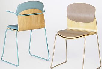 Des chaises nous renvoyant à des modèles traditionnelles, mais améliorées, telle sa précédente création, Hanger Chair, où un léger décalage de dossier change le profil et fonction de l'assise.