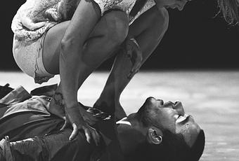 Un autre duo suivait cette première partie : Ours, de Idan Sharabi et Dor Mamalia, deux danseurs de belle prestance. Mais qui expriment dans cette pièce autant d’éloignement que de rapprochement. Dont la bande son est un dialogue (je n'en comprenais que quelques mots par ci par là). Et qui se termine par un solo, l’un des danseurs quittant la scène pour laisser l’autre occuper l’espace. Peut-être aurais-je mieux apprécié cette pièce si elle n’avait pas suivi celle de Justine et Frédéri…