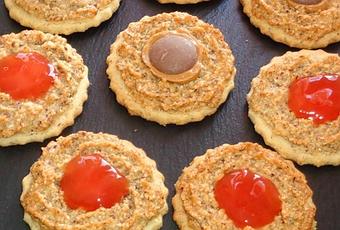 Une fois les sablés refroidis, mettre au centre un peu de confiture ou de pâte à tartiner.