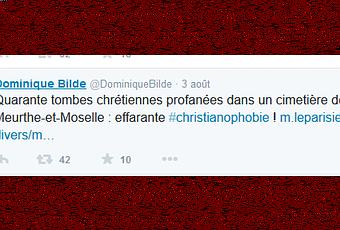 Une fois de plus, notre société gangrénée par l'intolérance, le racisme et les pratiques d'extrême-droite a fait fort. Je veux parler de la stupidité accablante dont on fait preuve certains réacs notoires et représentants d'extrême-droite officiels à l'occasion de la dégradation d' une quarantaine de tombes dans le cimetière de Labry en Meurthe-et-Moselle. Pris pas un accès de réactivité, lié lui-même à une information trop rapide, donc incomplète (sans que ceux qui la délivrent ne se préoccupent le moins du monde de la qualité de leur travail), on pouvait lire hier des cadres du FN, comme Dominique Bilde, députée européenne depuis 2014, hier sur tweeter, écrire ceci :