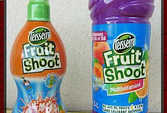 - Fruit Shoot grand format 1.5L, qui existe déjà en 3 parfums, Tropical, Multivitaminé et Orange. La nouveauté 2015, ce sont 2 parfums supplémentaires (Pomme-Banane et Fruits Rouges) : de quoi répondre à toutes les envies gourmandes ! Une boisson composée de jus de fruits et d’eau, le tout sans colorant artificiel.