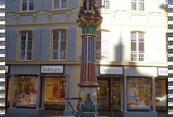 Son bassin octogonal est surmonté de la statue de la Justice. A ses pieds quatre personnages symbolisent les diverses formes de gouvernement de l’époque ancienne : un pape, un avoyer, un empereur et un grand Turc.
