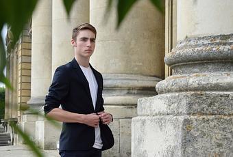 Pour commencer, je vous ai donc sectionné ce que l’on pourrait appeler « un intemporel ». Il s’agit d’une veste de costume slim bleue marine ! Evidemment comme c’est la période des vacances on sort la veste de son contexte formel. Pour cela, le mariage d’une veste bleue marine et d’un simple tee-shirt blanc donne un rendu vraiment sympa ! On assortit le tout avec un chino retroussé et une paire de derby et hop le tour est joué pour avoir une tenue à la fois chic et décontractée !