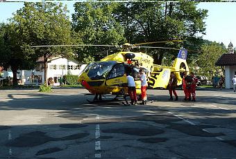 Ce vendredi un hélicoptère urgentiste s´est posé sur le parking central de Mittenwald (Markt) pour emporter une personne vers la clinique de Garmisch. Les équipes sanitaires et les pompiers sont intervenus pour transporter la personne par la fenêtre du premier étage d´une maison du Markt. Toute l´opération s´est déroulée dans le calme et la plus parfaite efficacité.