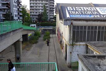 Directement sur les voies, des dizaines de personnes sont installées, au milieu des hautes herbes et des fleurs des champs. On considère un peu le décor : les bâtiments de la SNCF semblent décrire un petit dédale et on se situe au coeur de hautes tours d’habitations.