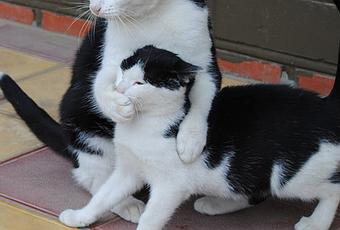 Chut!! tais toi ne miaule pas devant le chat du voisin, ton père pourrait t'entendre....